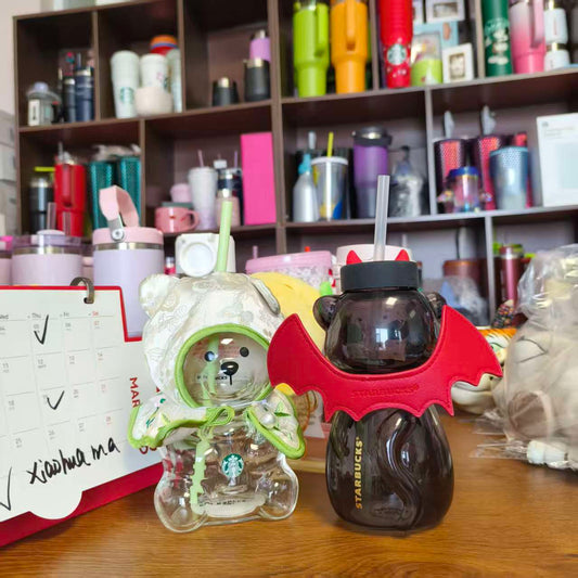 2pcs - Starbucks China Green Bearista BEAR and cat glass - please read details before order