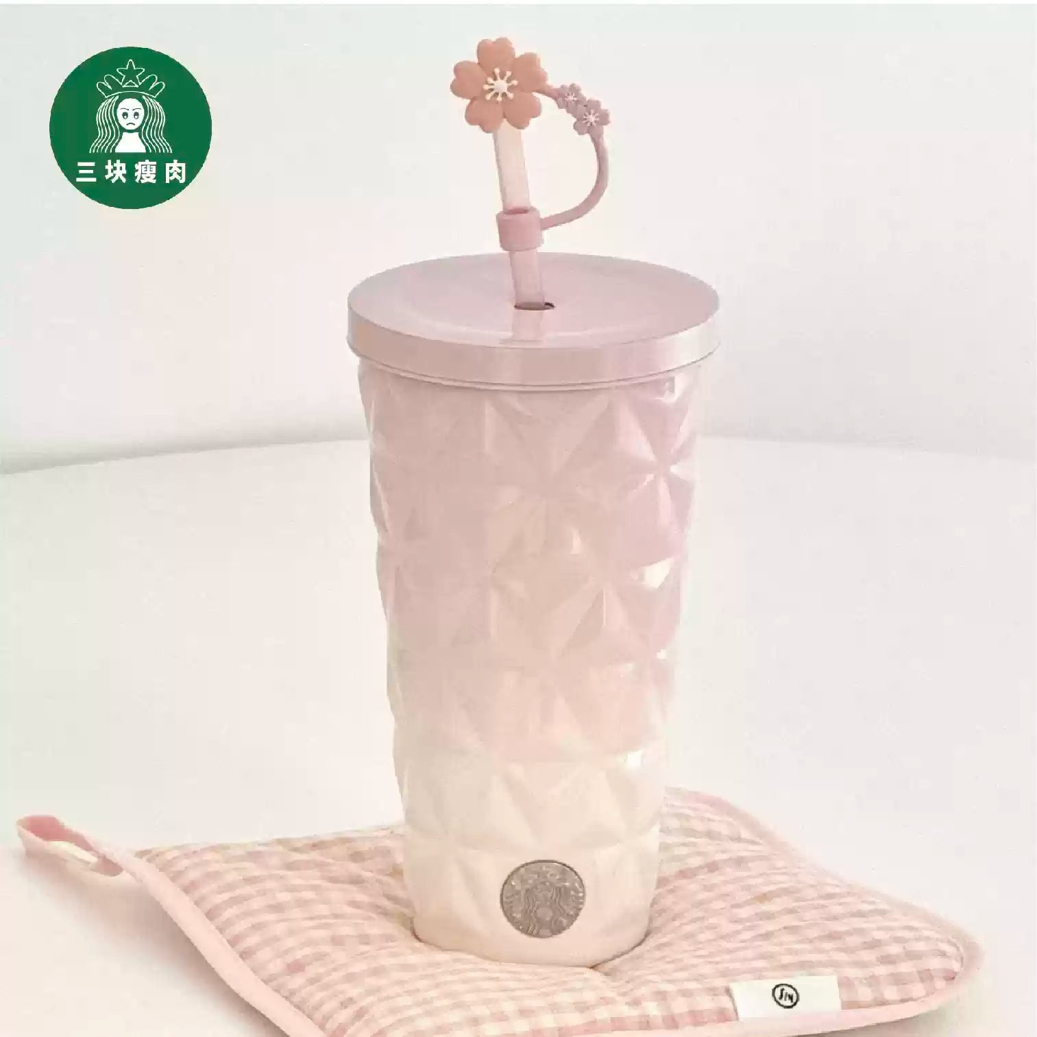 Starbucks China 2025 Sakura online series pink stainless steel straw cup with stopper